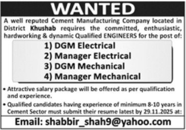Candidates, if you are seeking Cement Manufacturing Company Jobs 2025 Online Application, yes. Then it would help if you tried to complete the Cement Manufacturing Company Jobs because here you can easily apply for these vacancies: DGM Electrical Manager, DGM Mechanical Manager, and DGM Electrical.